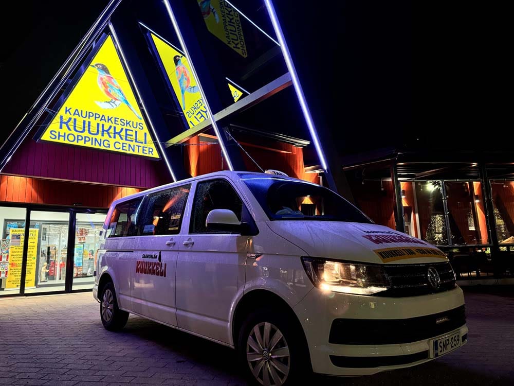 Taxis by order: taksikuukkeli@gmail.com or call +358 44 906 7725.